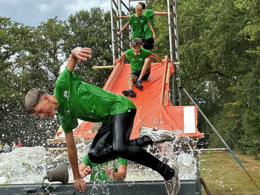 Stuifzand stond afgelopen zaterdag 23 augustus 2025 in het teken van sport, plezier en een flinke portie water. Meer dan honderd fanatieke deelnemers, die niet terugschrokken voor een nat pak of vieze kleren, liepen een uitdagende route van 4 of 8 kilometer door en rondom het prachtige dorp. Onderweg moesten zij maar liefst twintig – soms pittige – obstakels trotseren.