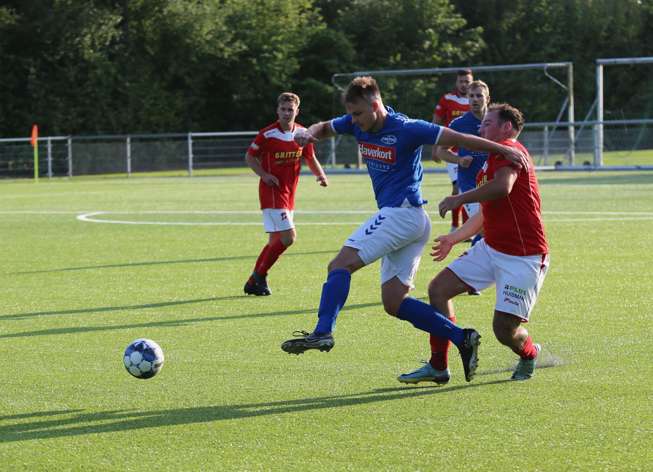 In de rust werd er door trainer Sikkes flink gewisseld en konden Bos, ten Oever (lichtgeblesseerd na de botsing) en Koekoek gaan douchen. Hiervoor kwamen 3 jeugdspelers voor terug. Het was dan ook invaller N. Pater die vanaf rechts met zijn verrassende schot keeper Bromans bijna wist te verschalken. Het zat Protos ook niet mee vanavond want keeper Bromans moest voor een blessure worden behandeld. Een mooie solo actie van D. Doldersum stierf in schoonheid want hij had het vizier niet goed afgesteld. Hierna volgende een warrig spelbeeld waarbij beide grensrechters terecht of onterecht de vlag hanteerden. Maar met een kwartier spelen was het N. Pater die de 2-1 liet aantekenen na een geweldige voorzet vanaf links door P. Metselaar. Later liet hij nog een geweldige actie zien maar het leidde helaas in de afronding niet tot een doelpunt. Ook D. Eppinga moet nog wat meer gaan oefen op afronden want van zeer dichtbij wist hij de bal nog over de goal te liften.