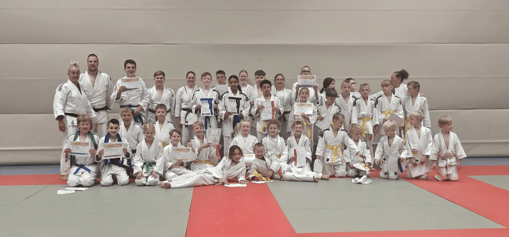 Voor sommigen moeilijk en spannend, maar iedereen kon na een persoonlijk woordje, felicitatie en de uitreiking van hun diploma, met iets lekkers dat aangeboden werd door het bestuur tevreden en voldaan huiswaarts keren.Lijkt het je een keer leuk om bij een van de verenigingen eens mee te doen om te kijken of je judo leuk vind bij de verenigingen zijn jullie van harte welkom.