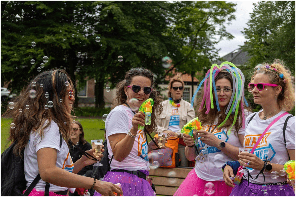 Walk & Dance is geen gewoon wandelevenement. Het is een unieke combinatie van plezier, verbinding en steun voor mensen die geraakt zijn door ernstige ziekte. Onderweg zorgen muziek, kleurrijke outfits en spontane ontmoetingen voor onvergetelijke momenten.