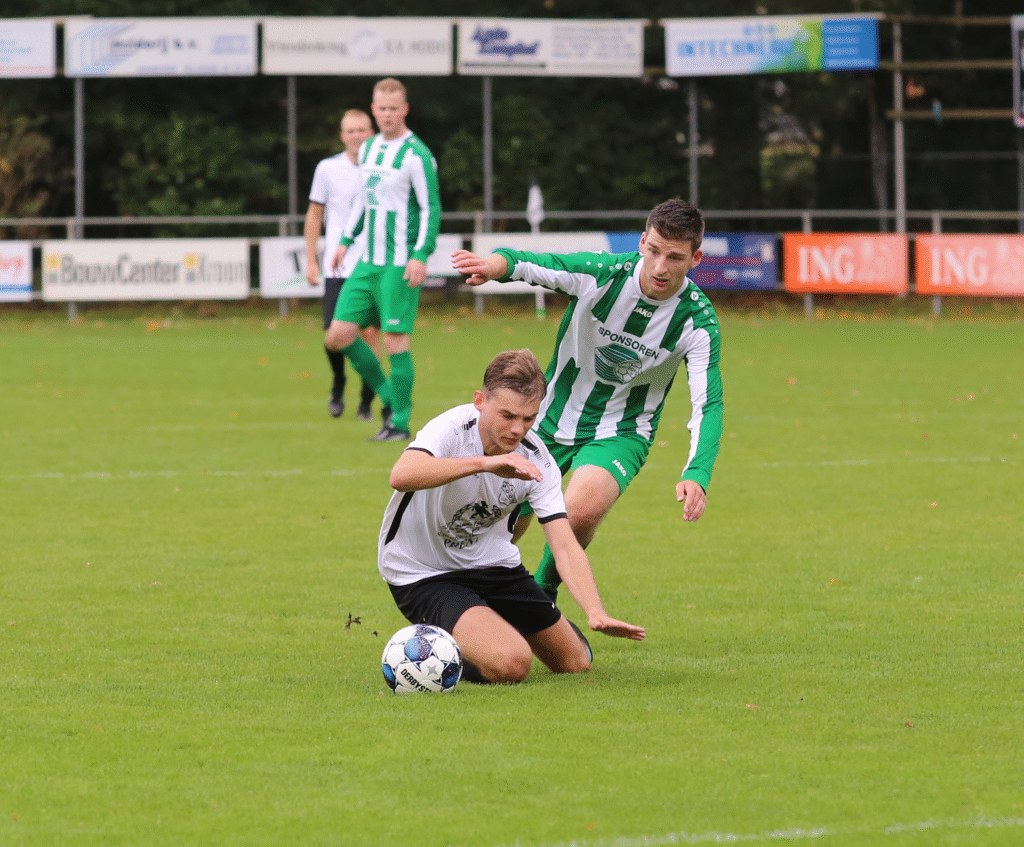 Witteveense Boys bleef echter gevaarlijk in de omschakeling. In de 31e minuut raakte een vrije trap van hen de lat, en vlak voor rust sloegen ze alsnog toe met een snelle counter: 2-2. Zo gingen beide ploegen met een gelijke stand de rust in.