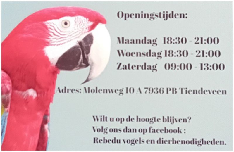 We verkopen volière vogels, diverse soorten voer en bodem bedekking.