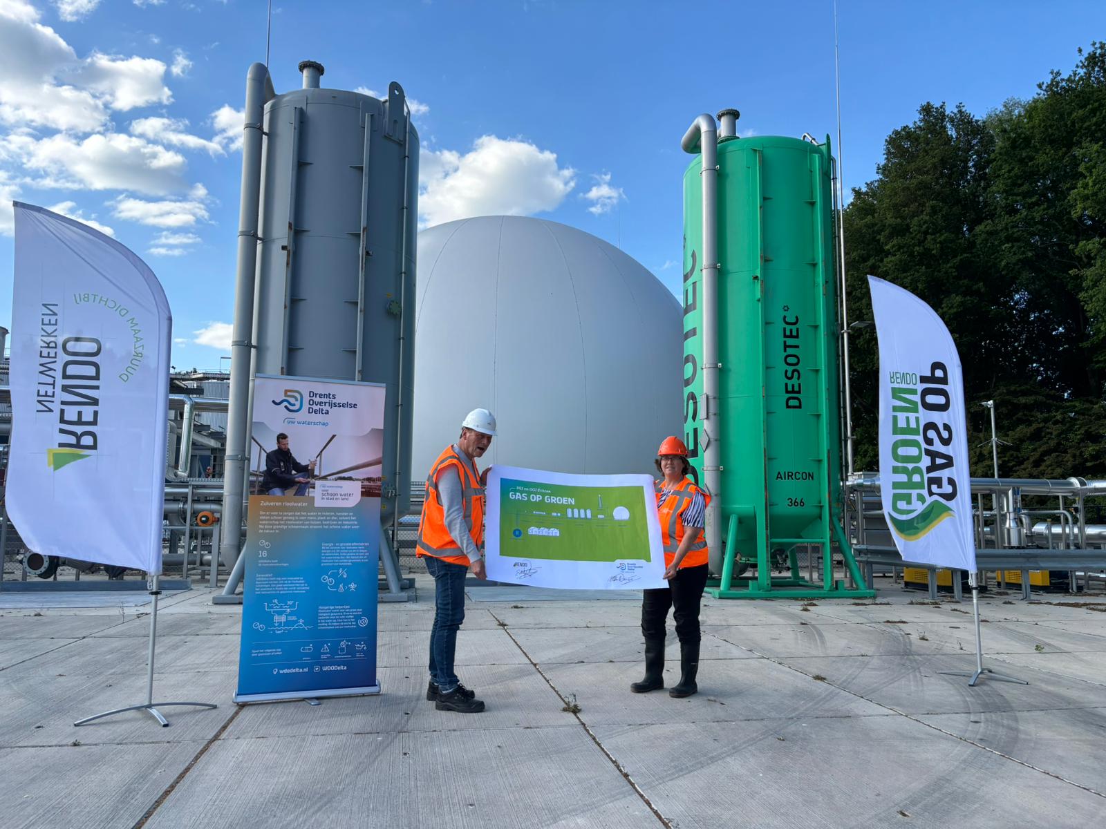 De handtekeningen werden gezet door Eddy Veenstra, algemeen directeur van RENDO, en door Mirjam Werges, directielid van Waterschap Drents Overijsselse Delta. Eddy Veenstra: “Het hergebruik van de bestaande gasinfrastructuur vormt een belangrijk onderdeel van de energietransitie, zeker in het landelijk gebied. RENDO doet er dan ook alles aan om de invoeding van groengas mogelijk te maken. Het project van de groengasinstallatie op de rioolwaterzuivering in Echten is een prachtig voorbeeld van innovatieve en realistische energietransitie.”